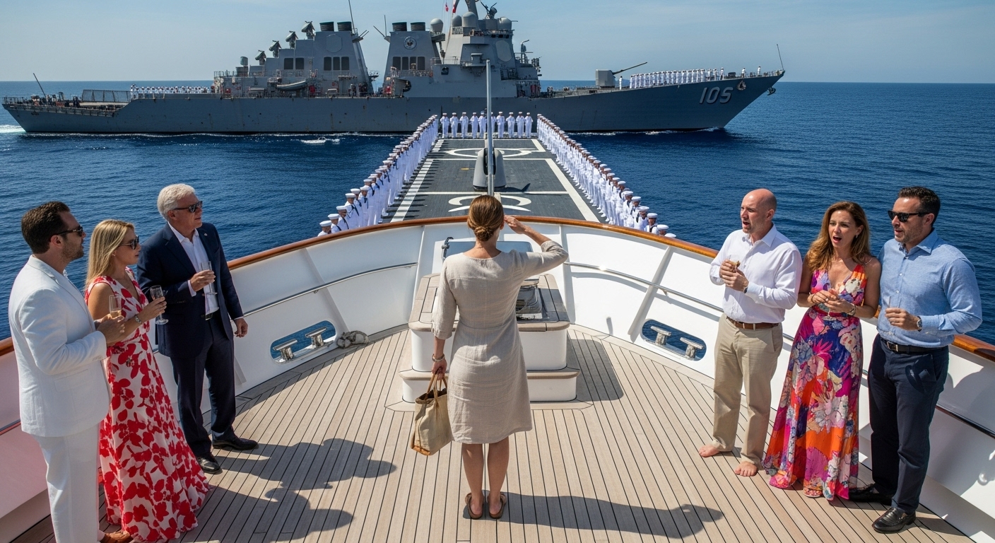 “Did you get lost, sweetheart? The Goodwill is on shore.” They laughed at my faded tote bag on their luxury yacht. Then they froze when a U.S. Navy Destroyer cut its engines, aimed its guns, and 1,000 sailors saluted me. They were about to learn what ‘belonging’ really means.