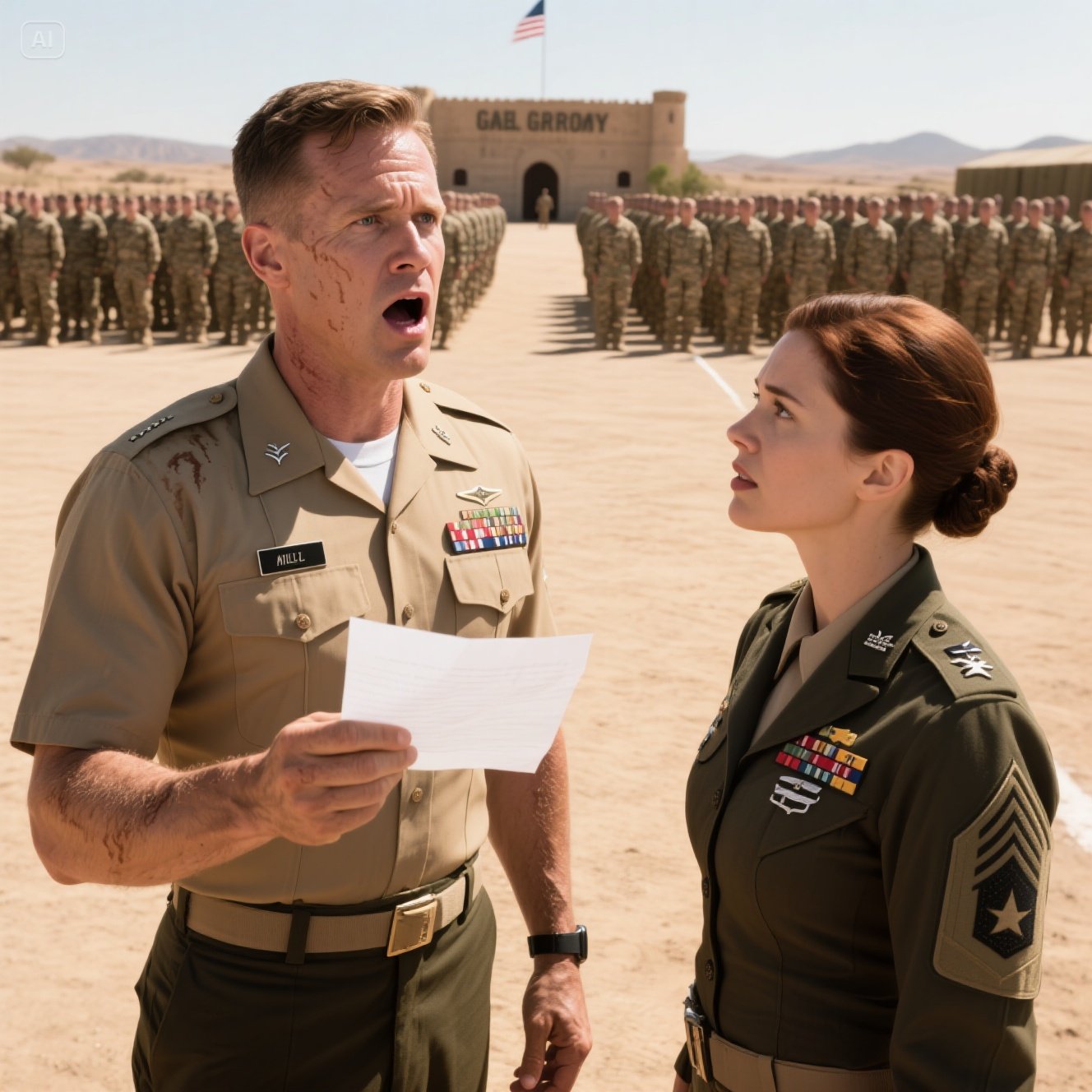 CSM Wallace watched. Evans watched. The entire formation watched as the blood drained from Miller’s face. The crimson, screaming red of his rage vanished, replaced by a sick, mottled, grayish-white. His sneer faltered. His mouth, which had been open in a roar, hung slack. His hand, the one holding the paper, began to shake violently.