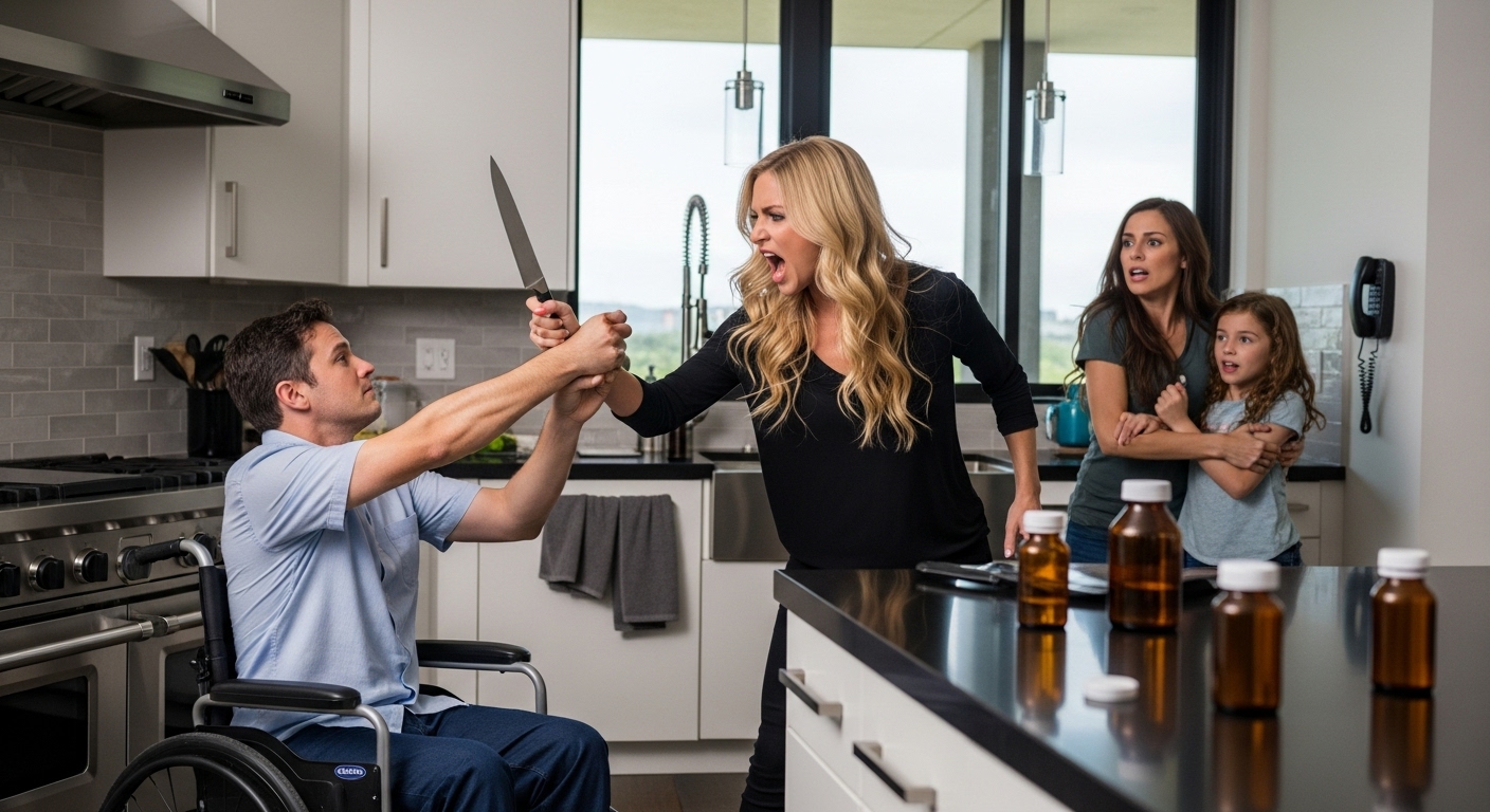 When the three of us—a paralyzed man, a terrified housekeeper, and a brave little girl—burst into the kitchen, we caught her.