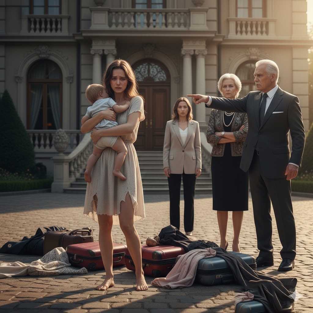 In an instant, Anna was standing on the porch, shivering, with nothing but a few changes of clothes. The house, the car keys, her bank documents, the precious jewelry Michael had given her—all were locked behind the formidable door now guarded by her hostile in-laws. She had lost her husband, and now, everything they had built together was gone.
