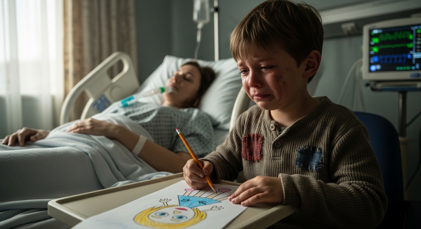 He sat by her bedside, the two broken crayon pieces clutched so tightly in his hand that they began to melt from his feverish heat. He felt utterly, terrifyingly alone. He had fought the only way he knew how—with his most cherished possession—and he had lost everything.